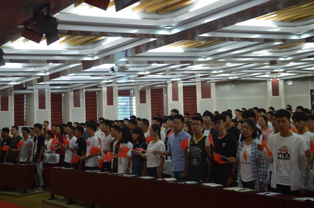 最后,大家一起唱响了《歌唱祖国》,《歌唱祖国》雄壮而又熟悉的旋律在报告厅响起,随着高亢激昂的伴奏,由学院合唱团领唱人员带领下,全场同声高唱,为新中国成立70周年献礼,把整个活动推向了高潮。整齐的歌声、挥动的国旗,把整个报告厅变成了歌的海洋、红色的海洋。