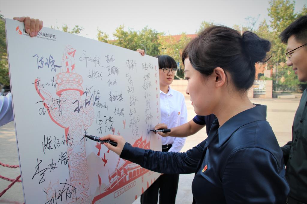 70年砥砺奋进,70年春华秋实。为纪念新中国成立70周年,向伟大祖国献礼,9月25日下午,建筑与城乡规划学院组织全体学生党员开展“庆祝新中国成立70周年”主题党日活动,本科生一支部书记王鹏飞、一支部宣传委员杨霈宣、本科生二支部书记刘超,研究生党支部书记李岩参加此次主题党日活动。