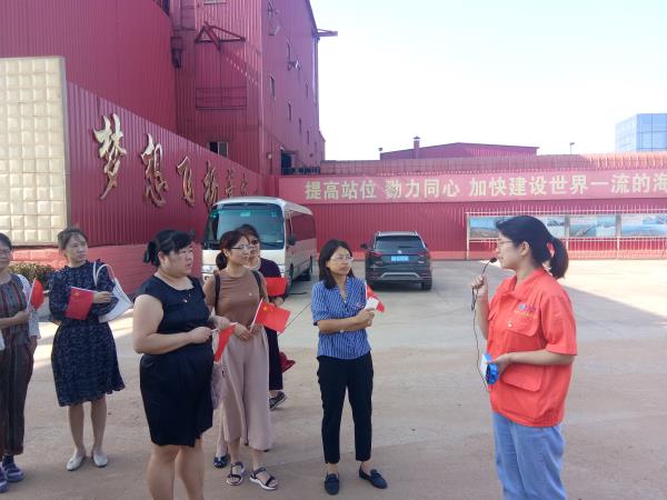 最美教师张冬梅教授带领同志们在矿石码头上即兴合唱了《我和我的祖国》。