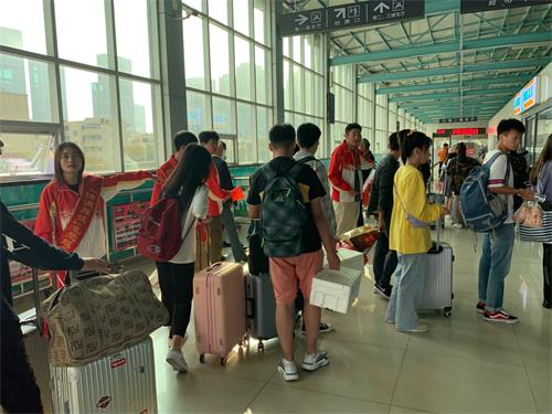 上午七点,同学们来到了西海岸汽车东站,汽车站负责工作人员对各位志愿者的工作做出了具体安排,将志愿者分配到不同的活动工作岗位展开服务活动。有的同学手握国旗为乘客与工作人员们提供帮助、送去祝福;有的同学为迷路的人群指路,为有困难人群购票,拿行李,还赠与他们表达爱国热情的小红旗。之后,同学们还为司机师傅与工作人员们送去了祝福与慰问,也送去了带着爱国情怀与民族自豪感的国旗与中国结。志愿者们一丝不苟的工作态度、良好的精神面貌和文明素养得到了汽车站工作人员和广大旅客的好评。