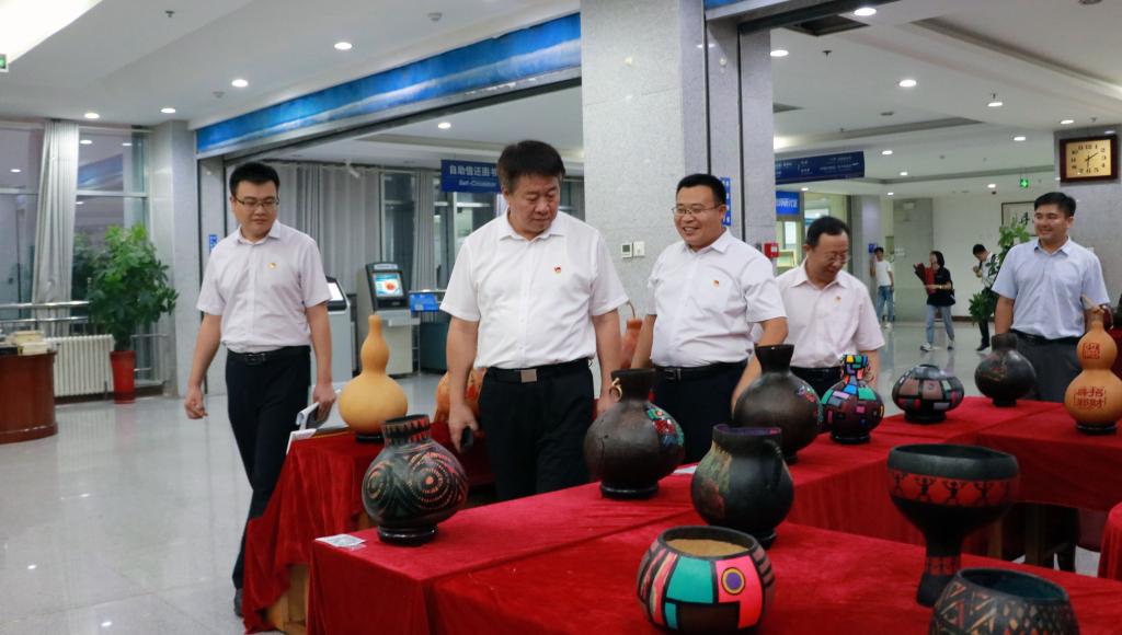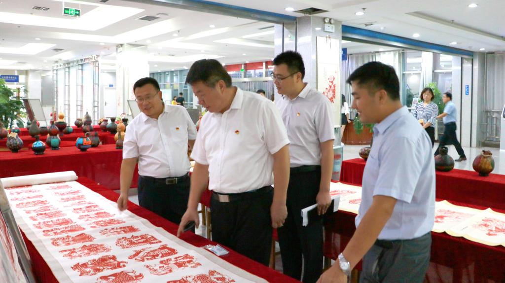 9月26日上午,由临沂校区学生工作部主办、兰亭书画协会承办的“喜迎七十华诞,共筑美丽中国”剪纸和葫芦雕刻艺术作品展在临沂校区图书馆楼大厅展出,学校党委副书记、校区党委书记李国华等领导班子成员参观展览。