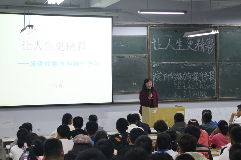 为让新生了解演讲与口才的重要性,锻炼提升语言表达能力,土木工程学院于10月11日晚在一教200阶举办“演讲与口才”主题讲座。此次讲座由分团委主办、争鸣演讲协会承办,特邀山东省演讲学会副会长、青岛市演讲与演唱协会副主席、高级政工师、高级演讲师于宝真女士主讲,山东省演讲学会常务理事、青岛市高校演讲委员会主任、青岛理工大学教授潘玲主持。