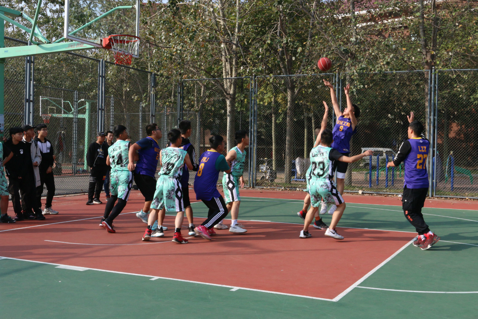 随后,裁判员代表和运动员代表进行宣誓。殷宗华、张翱分别为两场比赛开球,拉开了精彩的篮球比赛序幕。运动员们默契配合、攻防兼顾,顽强拼搏,为现场的观众带来了一场场精彩的比赛,展现了学生昂扬的精神风貌。