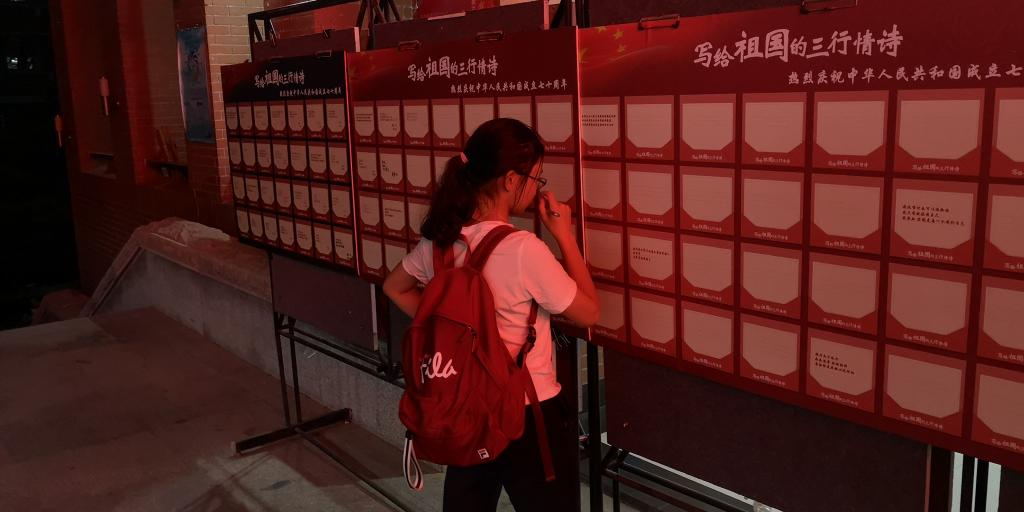 切切三行,道不尽爱国情。在“写给祖国的三行情诗”活动当中,同学们直抒胸臆,以诗词为媒介,将对祖国满满的爱与感谢,通过或浓烈或平淡的诗意话语展现出来,融入到那短短的三行情诗当中。“吾家何在?伊可见满天星斗缀在汤汤赤海,照亮满城黄金甲。”“用我一生伴你,一切皆可离,独独是你不可弃。”每一句都富含中国语言韵律之美,带给我们真切的感动。