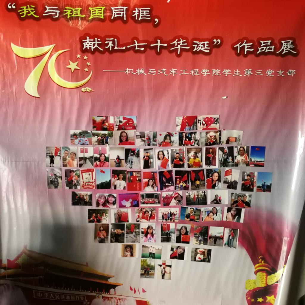 为庆祝中华人民共和国成立70周年,深入开展“不忘初心、牢记使命”主题教育活动,让更多的青年学生表达自己的爱国之心,近日,机械与汽车工程学院学生第三党支部开展了以“我与国旗同框,献礼七十华诞”为主题的党日活动,学院300多名党员、入党积极分子参加了此次活动,与国旗同框合影,说出对祖国的美好祝愿。