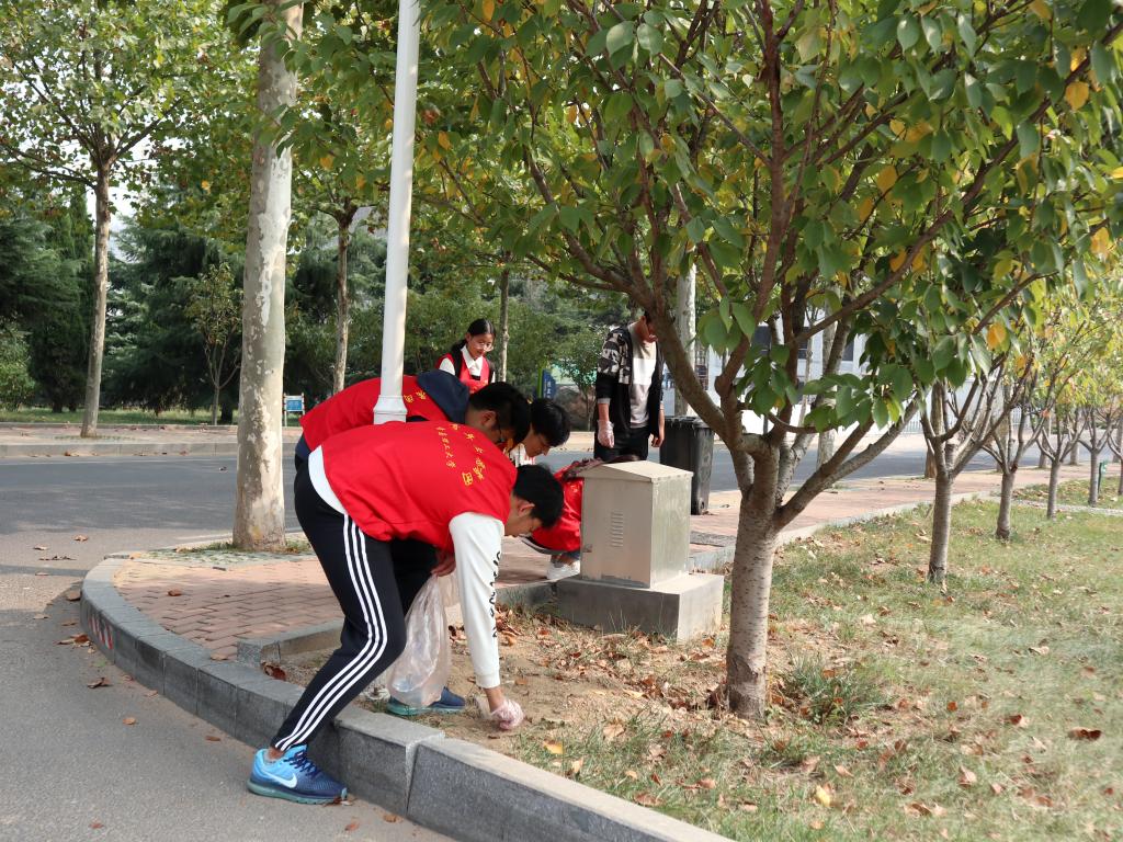 10月24日中午,理学院“青理守护志愿团队”在嘉陵江路校区开展创建美丽校园活动。党总支副书记刘聘和全体学生工作干部参加活动。