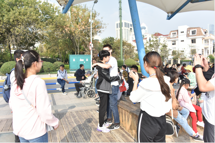 在拥抱志愿者活动招募期间,同学们踊跃报名参加。简单培训过后,在以“杜绝纠缠打扰无礼嬉闹;保持绅士温柔真诚用心”为行动原则下,志愿者于下午两点三十分在五四广场集合,以小组为单位开始进行拥抱陌生人的活动。活动中,同学们抛却羞涩,主动向陌生人征询是否可以拥抱,在得到对方同意后进行热情拥抱并送上温暖的微笑,通过这种方式传递关怀。活动过程中志愿者还主动与语言不通的外国友人交流,展现出志愿者的热情与活泼,随后向陌生人进行采访,以填写问卷的形式对本次活动进行了基本的调研总结。本次拥抱志愿者们也表示“拥抱”不是目的,而是希望以这种温暖的形式传达“拒绝冷漠”的精神,通过拥抱促进大家对人情冷暖的关注,同时提醒人们拒绝冷漠,热爱生活。真正做到温暖他人,温暖社会,温暖自己。