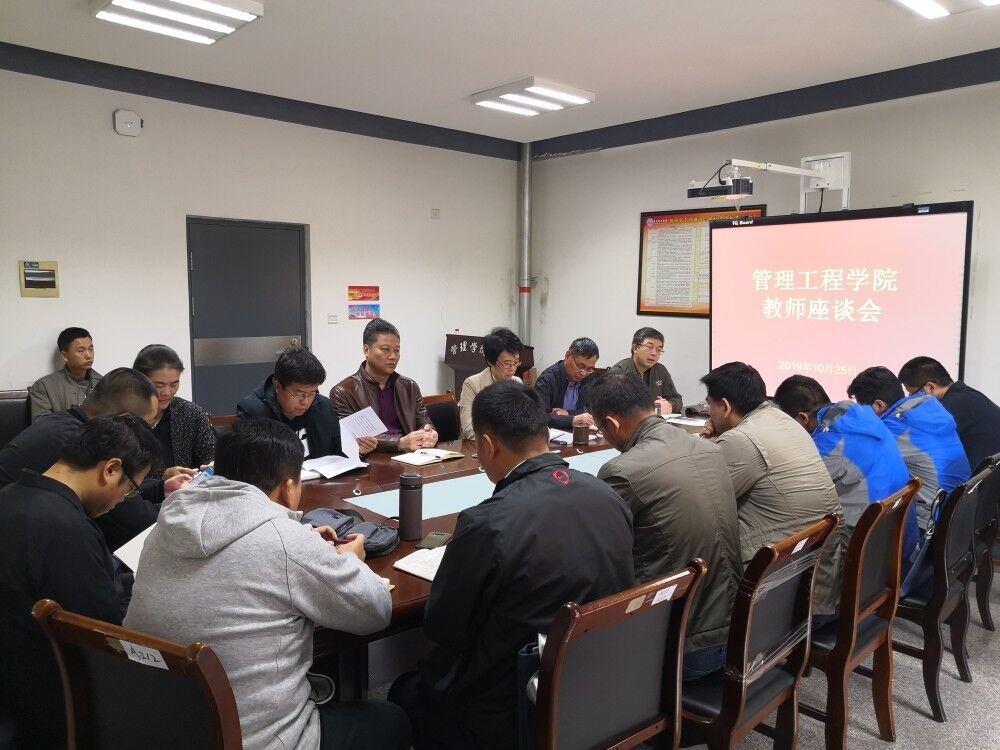 根据学校期中教学检查的工作安排,10月25日上午,管理工程学院在嘉陵江路主教学楼A212会议室召开了教师代表座谈会。学院党总支书记梁虹、院长荀志远、副院长申建红、副院长陈为公、党总支副书记于利俊、各教研室、实验室和教科研办公室等15名教师参加座谈,会议由学院副院长申建红教授主持。