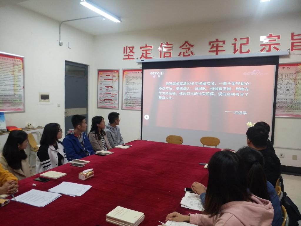 本次集中学习分为三个部分:支部书记薛腾飞领学《意见》、支部党员共同观影《榜样4》、党员同学交流学习观影体会。首先在领学环节中,薛腾飞带领全体党员从六个方面全面深入的学习了《意见》的主要内容,分别为:重大意义、目的、总体要求、四个特点、四大任务以及四项贯彻落实举措。