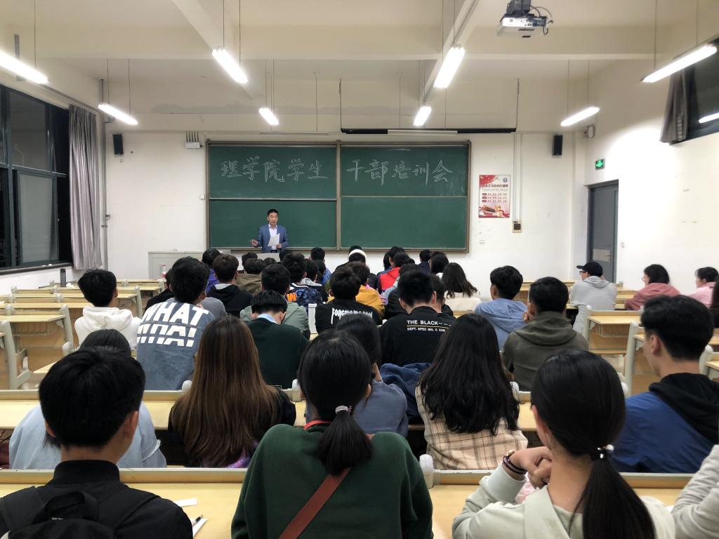 为深入贯彻落实学校“不忘初心、牢记使命”主题教育相关会议精神,进一步提高学生干部的政治素养和工作能力,理学院于10月31日在嘉陵江路校区召开学生干部培训会,会议由党总支副书记刘聘主持,全体辅导员和主要学生干部参加培训会。