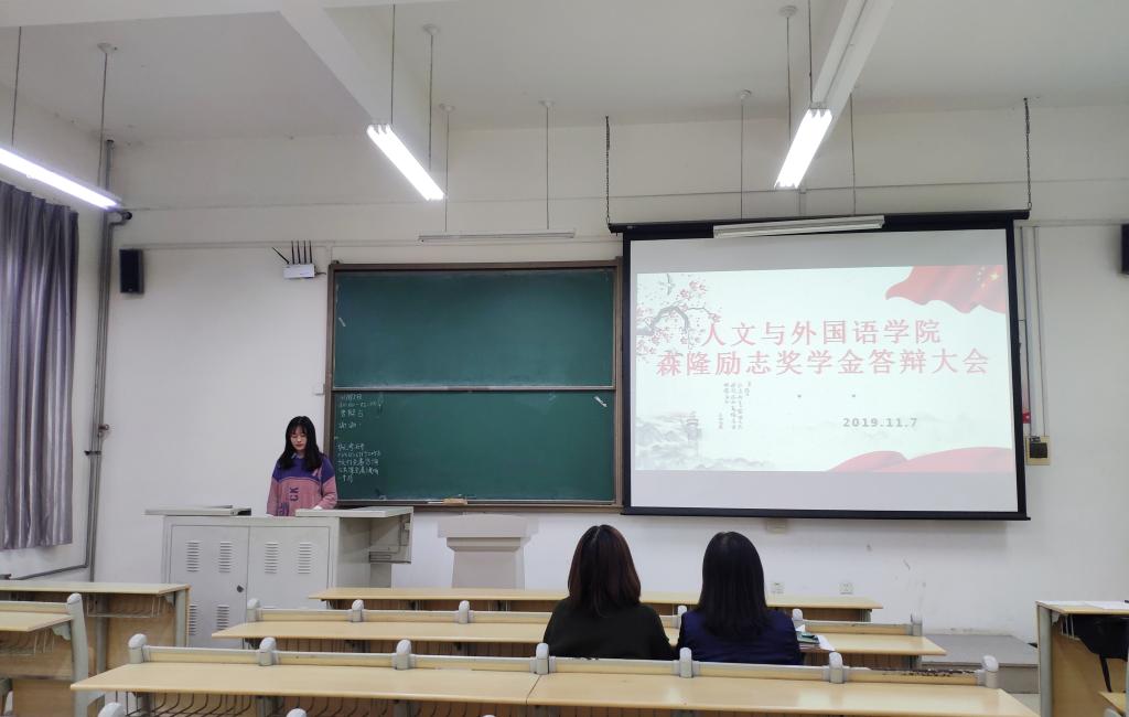11月7日上午,人文与外国语学院森隆励志奖学金答辩会在主教学楼B124教室顺利举行,辅导员贾舒文、王晓燕担任本次答辩的评委。