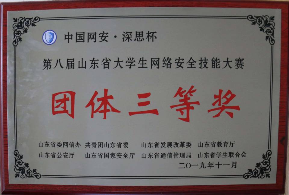 日前,“中国网安·深思杯”第八届山东省大学生网络安全技能大赛在山东政法学院举行,决赛采用了国际网络安全大赛常用的网络安全对抗赛模式。我校参赛代表队张洪涛、刘艺超、兰宏浩组(指导教师:陈哲云)获得团体三等奖。