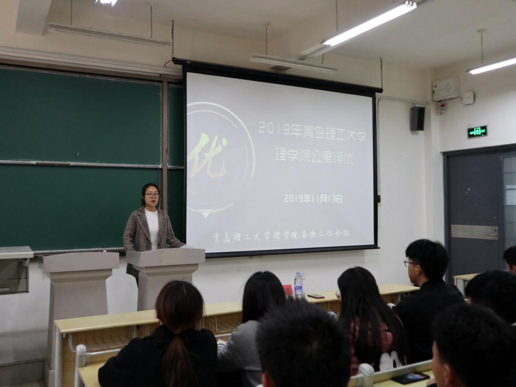 为深入贯彻落实“美丽校园”建设工作,加强大学生公寓文化建设,充分发挥学生公寓文化育人功能,引导学生养成良好的学风,创建理学院良好的宿舍学风,11月13日,理学院在嘉陵江路校区主教学楼B229教室举办了2019年公寓评优答辩会。理学院分团委书记李晓辉以及各年级学生代表参加答辩会,理学院易班站指导老师、辅导员公圆圆主持答辩会。