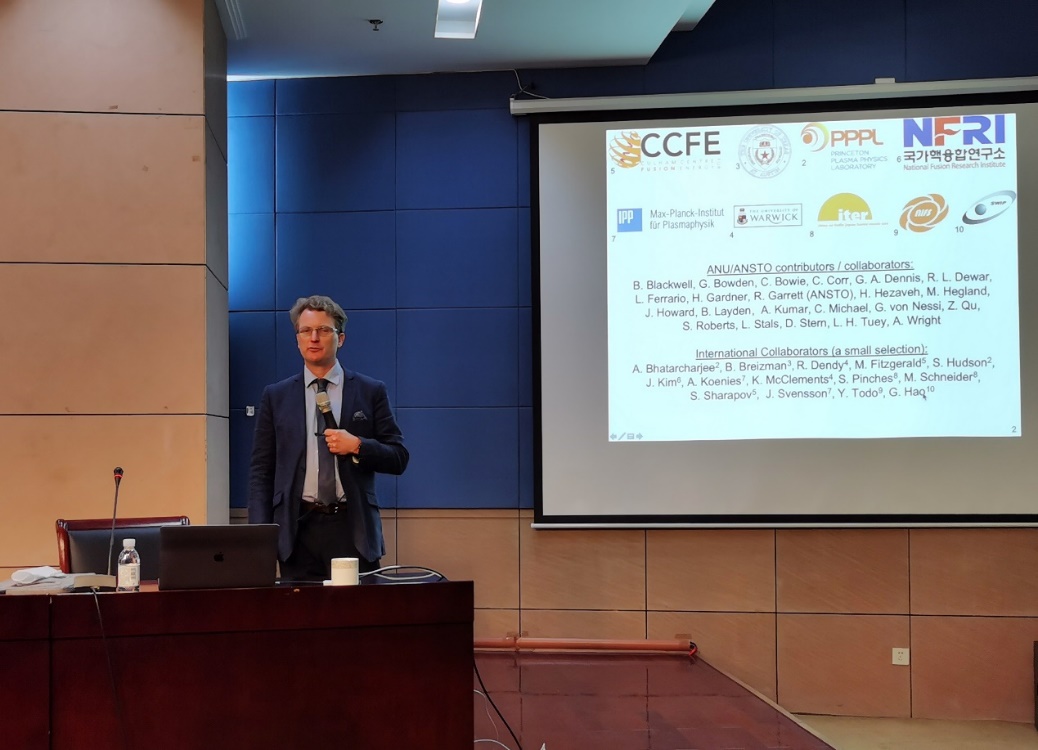 报告中,Hole教授首先介绍了核聚变的原理、发生反应的条件、反应装置类型和研发现状、核聚变能源优势等内容。随后,Hole教授介绍了目前世界主要国家对开发核聚变能源所开展的研究计划,重点介绍了全球规模最大、影响最深远的国际科研合作项目之一——国际热核聚变实验堆计划(ITER),详细介绍了ITER计划所采用的超导托克马克(Tokamak)装置。同时Hole教授也指出了目前受控核聚变装置所存在的理论问题和工程技术问题,这些问题使得人类安全可靠地利用核聚变能源还有一定的距离。