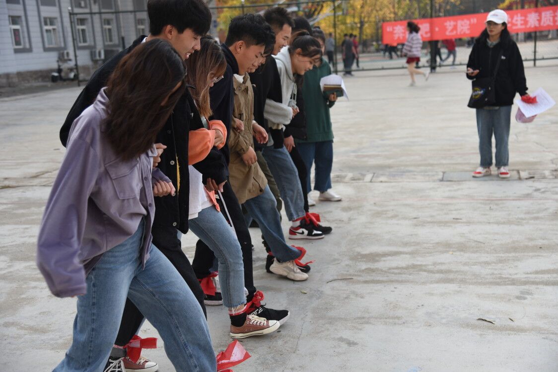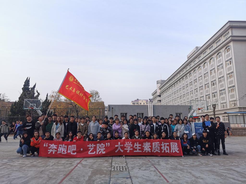 深秋的阳光温馨恬静,深秋的蓝天白云飘逸,深秋的校园五彩斑斓。为增进同学间的友谊,提高班级的凝聚力和创造力,丰富同学们校园文化生活,11月16日上午,艺术与设计学院在北院篮球场举行“心连心”大学生素质拓展活动。学生会各部门负责人及2019级新生共计百余人参加了此次活动。