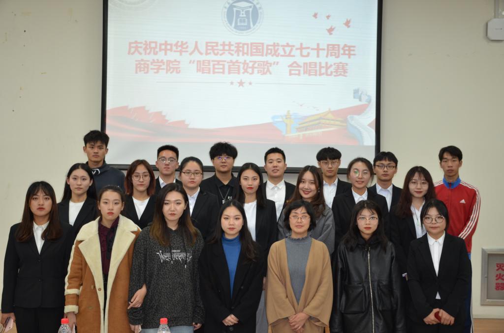 此次“歌声颂祖,礼赞新时代”庆祝新中国成立70周年合唱比赛是商学院实践“三百工程”暨读百部好书、唱百首好歌、吟百首好诗词活动的重要组成部分。本次合唱比赛不仅激发了同学们心中的爱国热情,也通过合唱的形式增强了班级与专业之间的凝聚力,锻炼了同学们的团队协作能力。首首经典红歌的演绎不仅充分展现了商学学子积极向上的精神风貌,同时也激励同学们不忘爱国初心,牢记强国使命,继续为成为社会主义合格建设者和可靠接班人而不懈努力。(撰稿:齐彩红 李靖 审核:董兰国)