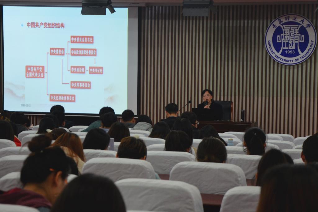 为进一步贯彻落实“不忘初心、牢记使命”主题教育活动要求,深入学习领会党的十九届四中全会精神,11月21日下午,管理工程学院在嘉陵江校区主教学楼一楼西报告厅举办党的十九届四中全会精神宣讲报告会,会议特别邀请我校马克思主义学院副院长华章琳教授担任主讲人。党总支副书记于利俊、分团委书记兼学工办主任陈永亮、学院全体辅导员及师生党员、积极分子共计200余人参加此次报告会。报告会由于利俊主持。