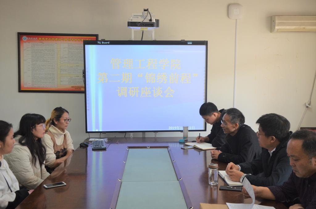 为进一步落实学院2020届本科毕业生就业工作,动态掌握学生的求职就业情况,提高大学生就业的主动性、积极性,11月22日下午,管理工程学院在A212会议室举办了第二期“锦绣前程”就业工作促进会议,特别邀请物流管理教研室周盛世、刘明老师参加本次活动。学院党总支副书记于利俊、学院就业工作辅导员张翔,物流161班、162班部分学生参加本次座谈会。