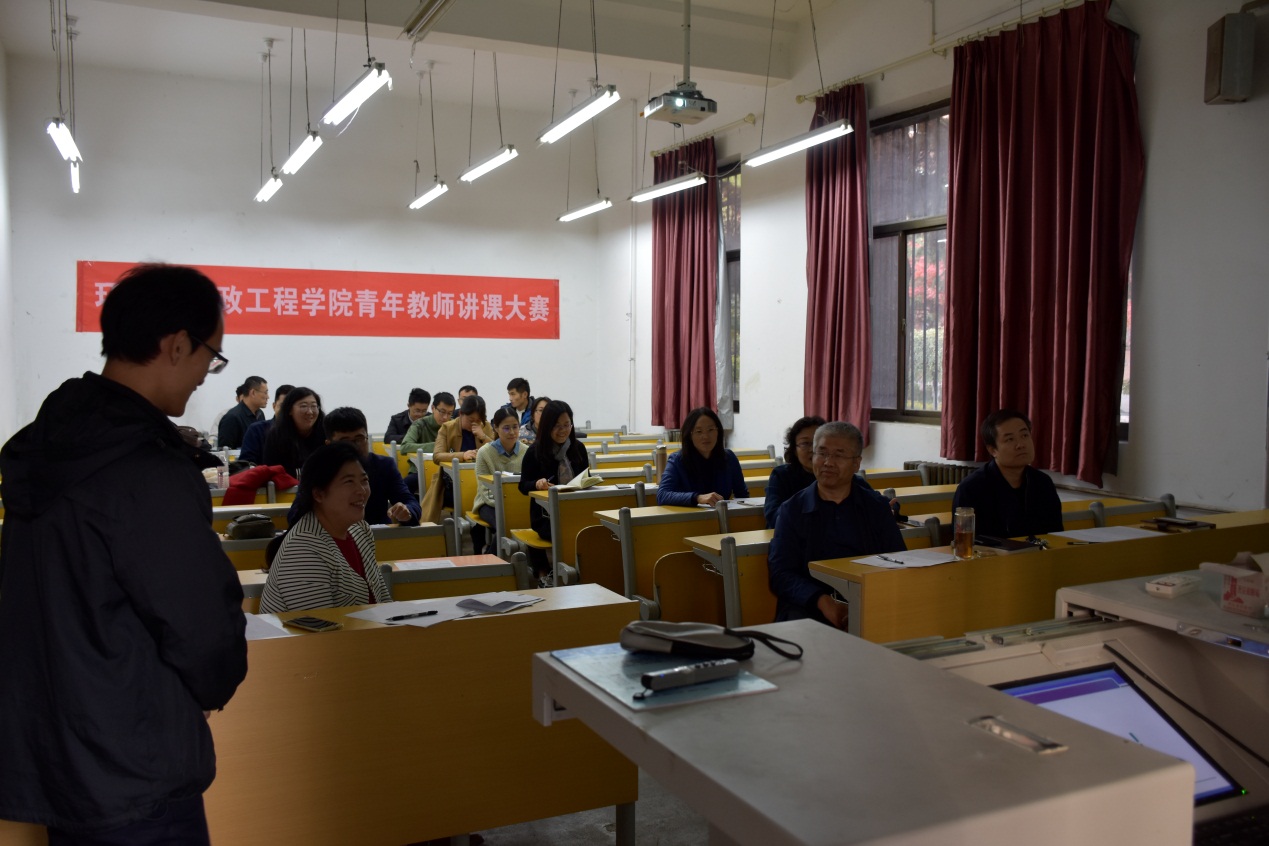 近日,环境与市政工程学院2019年度青年教师讲课大赛在1号教学楼231举行。教学副院长李金成、学院党支部副书记邵长飞、教学指导委员会主任王军英、建环教研室主任王海英、化学教研室主任孙好芬、流体力学教研室主任武桂芝、学院院长助理、山东省高校教师教学比赛一等奖获得者刘龙作为评委参加了本次青年教师讲课大赛。大赛由李金成主持。