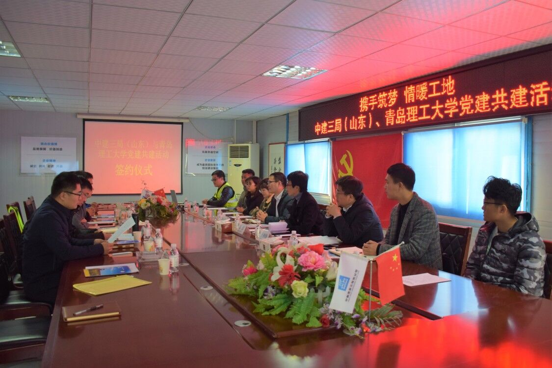 11月26日下午,在第33个国际志愿者日来临之际,管理工程学院师生一行8人在党总支书记梁虹、副书记于利俊的带领下,来到中建三局总承包公司山东分公司中船重工项目部,开展“携手筑梦、情暖工地”党建共建活动,校企双方交流了各自在党建方面的先进作法,签订了支部党建共建协议书,并向码头工人捐献了衣物。