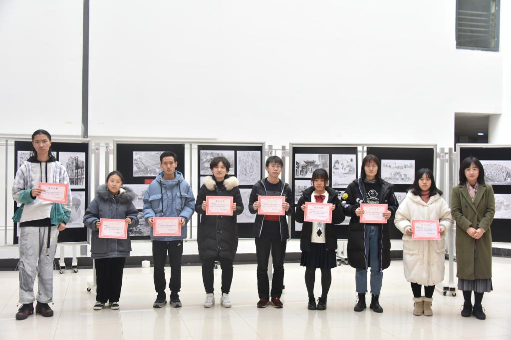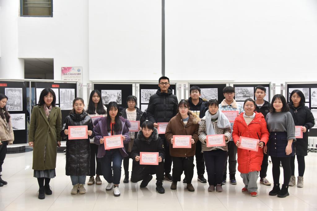 随后,主持人宣读了本次大赛的获奖名单,并由各位老师为获奖同学颁奖。在徒手线组中,园林191朱赫、王丹获得一等奖,园林191郑好、陈玉婷获得二等奖,园林191朱玉麒、周泽惠、陈倩倩、邓声冲获得三等奖,园林191陆帅明、张文宇等五人获得优秀奖。在钢笔画组中,园林191王佳欣、王嘉宁获得一等奖,园林191陈安琪、吴思睿、施鹤飞获得二等奖,建学194刘奕辰、杨瑞丰等四人获得三等奖,园林191周泽惠,建学191亓芸杨等十二人获得优秀奖。此外,园林191班级同学积极参赛,提交作品的质量较高,获得了优秀组织奖。