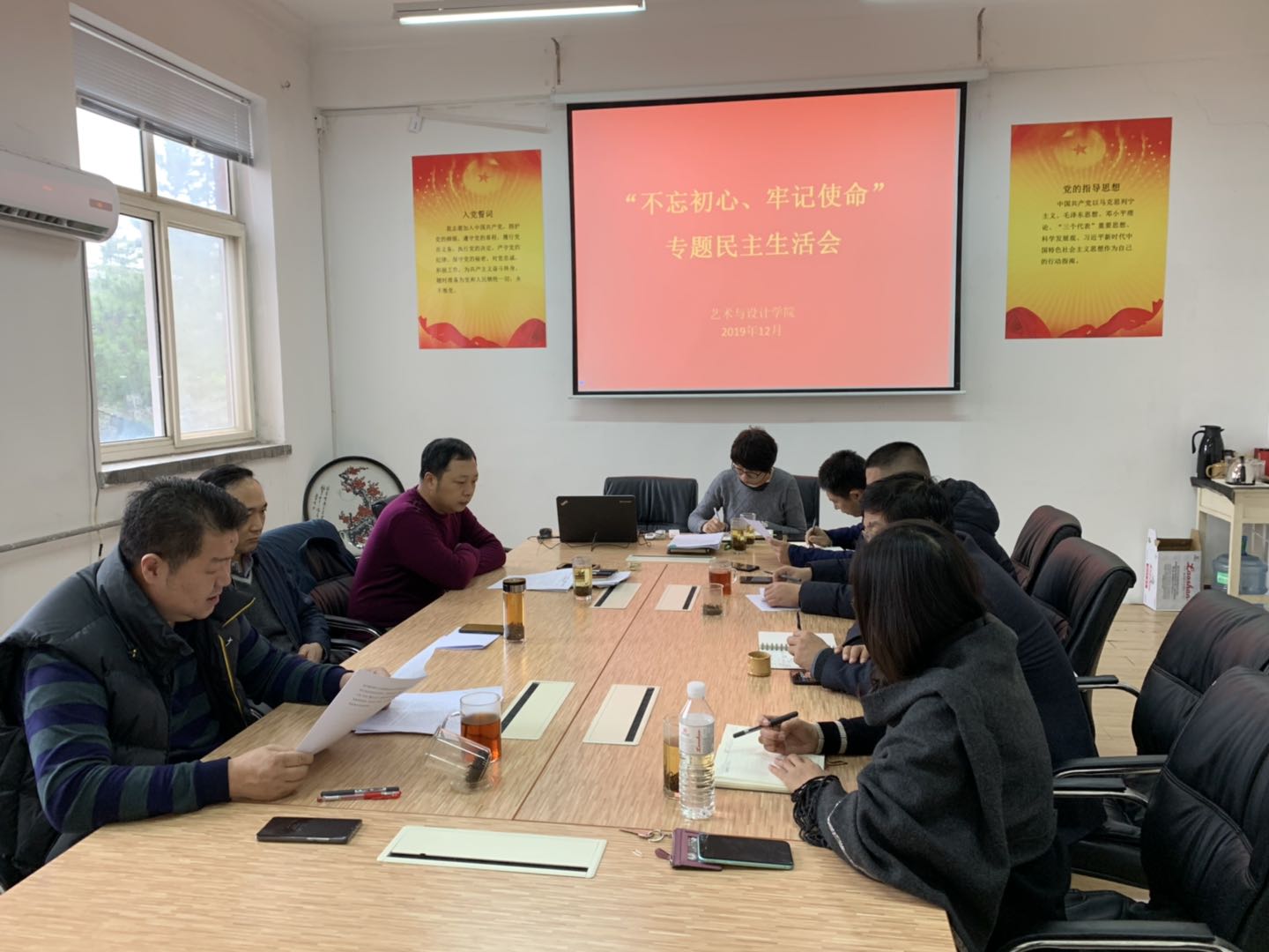 按照学校党委统一部署,12月16日上午,艺术与设计学院党总支领导班子召开“不忘初心、牢记使命”专题民主生活会。党委常委、组织部部长郭建锋,正处级组织员侯方高到会指导。学院党总支领导班子成员孙波、徐佐君、总支委员朱宏轩、吴玮、王俊富、党外处级干部王春鹏、李泉涛列席会议。会议由学院党总支书记孙波主持。