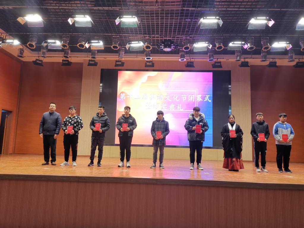 12月19日晚,临沂校区第十三届英语文化节闭幕式暨颁奖典礼在图书馆报告厅举行。临沂校区党委常务副书记李国涛,学校理学院副院长、校区基础部主任戚云松,学生工作部副主任、团委书记刘宗庆,基础部副主任李齐,教学科研部副主任孙宗明出席并为获奖学生颁奖。