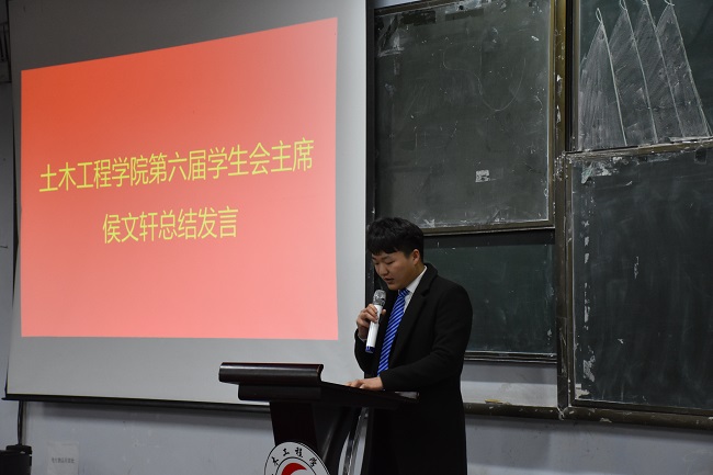 大会在学生会工作总结视频中拉开序幕,学生会主席侯文轩、主席团成员、各部长等依次进行总结述职,对学年学生会工作进行总结并对下学期的学生工作进行展望,纷纷表示在将来的学生工作中,学生会将始终立足于学生的切实需要,不断创新工作思路,弘扬服务精神,努力为广大师生提供高效优质服务,为学院学生工作的建设贡献力量。徐杨杨宣读本学年优秀学生干部名单,并为他们颁奖。王中帅做总结发言,他肯定了学院学生会本年度取得的优异成绩,赞扬了学院学生认真踏实的学习态度,并就学生会的定位、活动开展的层次深度以及品牌意识的培养等问题与同学们进行了工作心得的交流,鼓励学院学子不忘初心,继续做好大学生思想引领工作,带领广大青年听党话、跟党走,全心全意为同学服务,勇于开拓创新,不断增强自身的存在感与价值感,为今后的充实人生打下坚实基础。