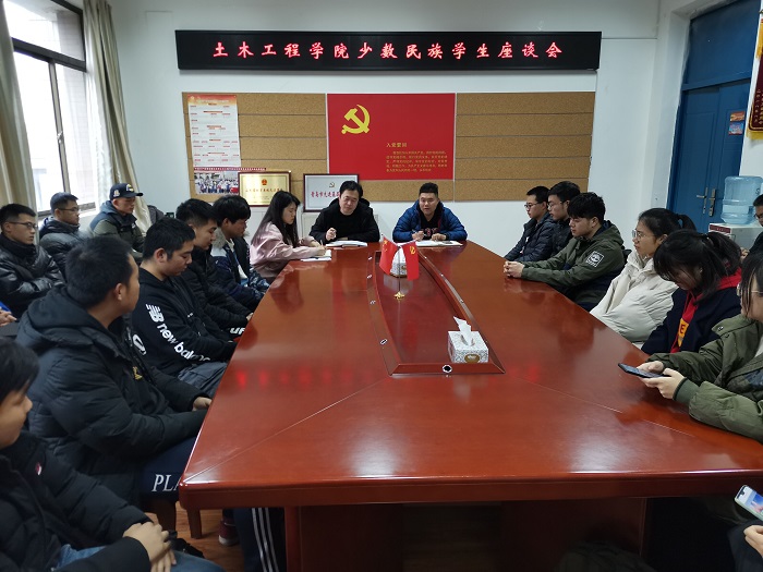 临近期末,为了解少数民族学生学习、生活状态,帮助大家解决在生活和学习上遇到的各种困难,增强各民族同学之间的情谊,12月25日,土木工程学院于1教409会议室举行少数民族学生座谈会。学院党总支副书记邵先锋,学生工作办公室主任、分团委书记王中帅,辅导员徐杨杨及各年级少数学生代表参加座谈会。