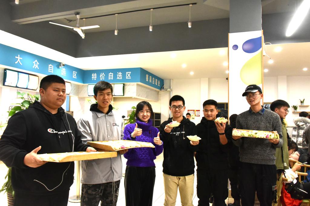 当一盘盘热气腾腾的饺子出锅时,大家都兴奋不已,迫不及待的想要尝尝看。园林191班的潘美琪同学说:“今年元旦只放一天假,同学们回家不现实,本来以为大学生活的第一个新年就这样平平淡淡的度过了,没想到学院组织了这个活动,大家一起包饺子迎新年,不仅班级同学可以热热闹闹的增进感情,而且辅导员老师和班主任老师也都参与进来,还没有距离感的跟我们一起动手一起包,说说笑笑的特别亲切,让我们感受到了学院的温暖和老师的关爱。我们大都是2000或2001年出生的,算周岁或者虚岁今年都20岁了,20岁对应2020年,用‘今天我们20岁’这个主题也特别合适。而且自己包的饺子自己吃,也别有一番滋味。”