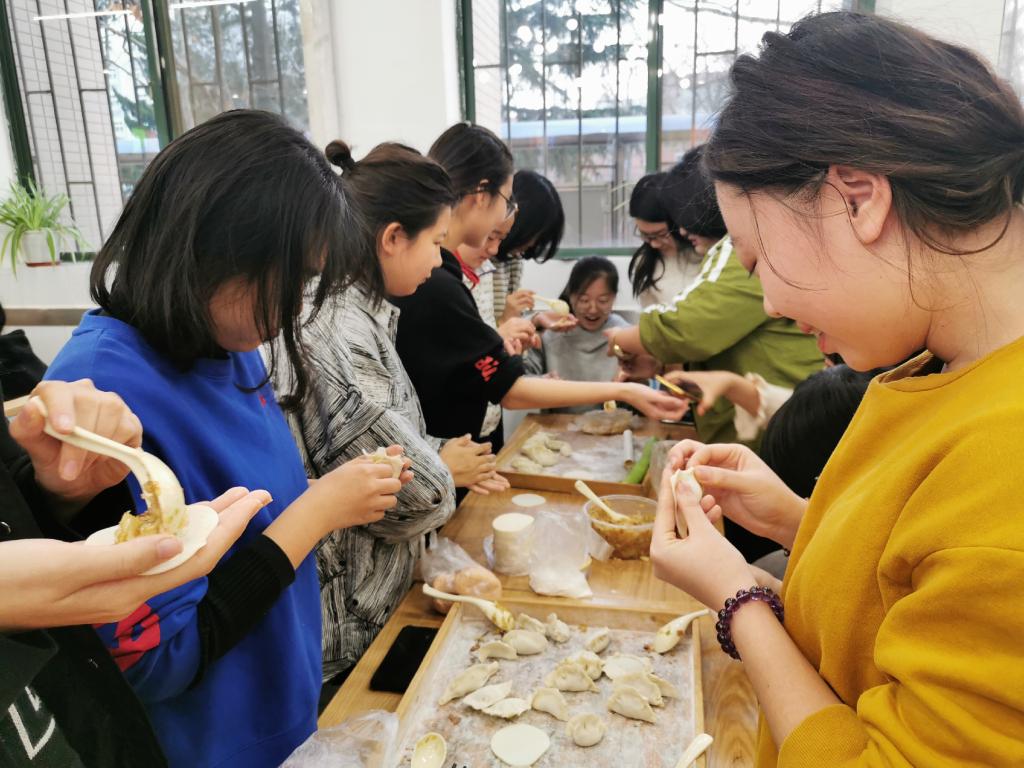 1月1日下午,思源餐厅洋溢着浓浓的节日氛围。长桌上摆满了包饺子所用的馅料、饺子皮、面团、擀面杖等食材和用具。活动开始前,大家纷纷围在长桌两侧拍照记录,并合影留念。活动开始后,2019级以班级为单位围在一起,揉面的揉面、擀皮的擀皮、装馅儿的装馅儿,每位同学都挽袖子、包饺子,积极参与到活动中来。由于地域文化不同、经验技巧不同,大家包出来的饺子也形态各异,千姿百态,令人捧腹。在活动中大家不仅一起话新年,还促进了地域文化的交流,餐厅时不时爆发出阵阵欢声笑语,气氛融洽而活跃,温暖而愉悦。