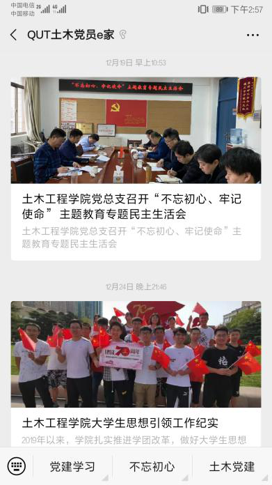 学院党总支将不断完善“QUT土木党员e家”微信公众号建设,充分发挥两处“党员之家”活动室的功能,积极探索在学生宿舍建设党员活动室等,“线上线下”共同构筑起党员温馨之家、精神家园,凝聚起广大党员力量,为学院深入推进各项工作打好组织领导基础。