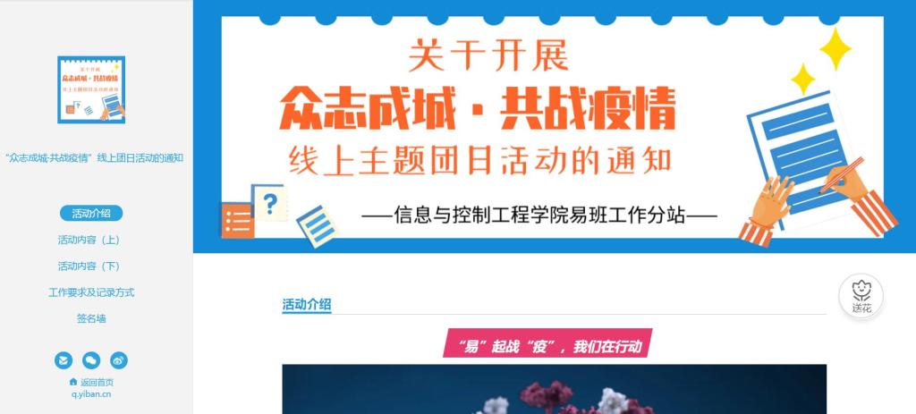 近期,新型冠状病毒感染肺炎疫情防治攻坚战正在全国打响,为保障师生健康,防范病毒传播,使更多人了解防疫相关资讯,做好“不见面”的疫情科普,信息与控制工程学院易班工作分站也积极响应,同心战“疫”,“易”起加油。