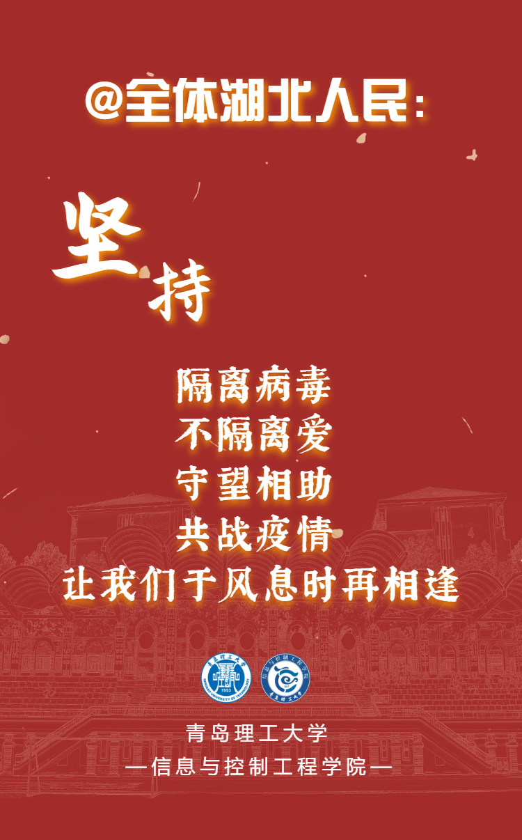 “打赢这场疫情防控阻击战,不仅仅需要的是医护工作者们,更是我们每一名大众密切配合。封城封村不封心,我们不聚会,减少外出,保护好自己就是对社会的一份责任。只要我们坚定信心、同舟共济,一定会打赢这场阻击战。武汉加油!中国加油!”——信息172胡兴卓