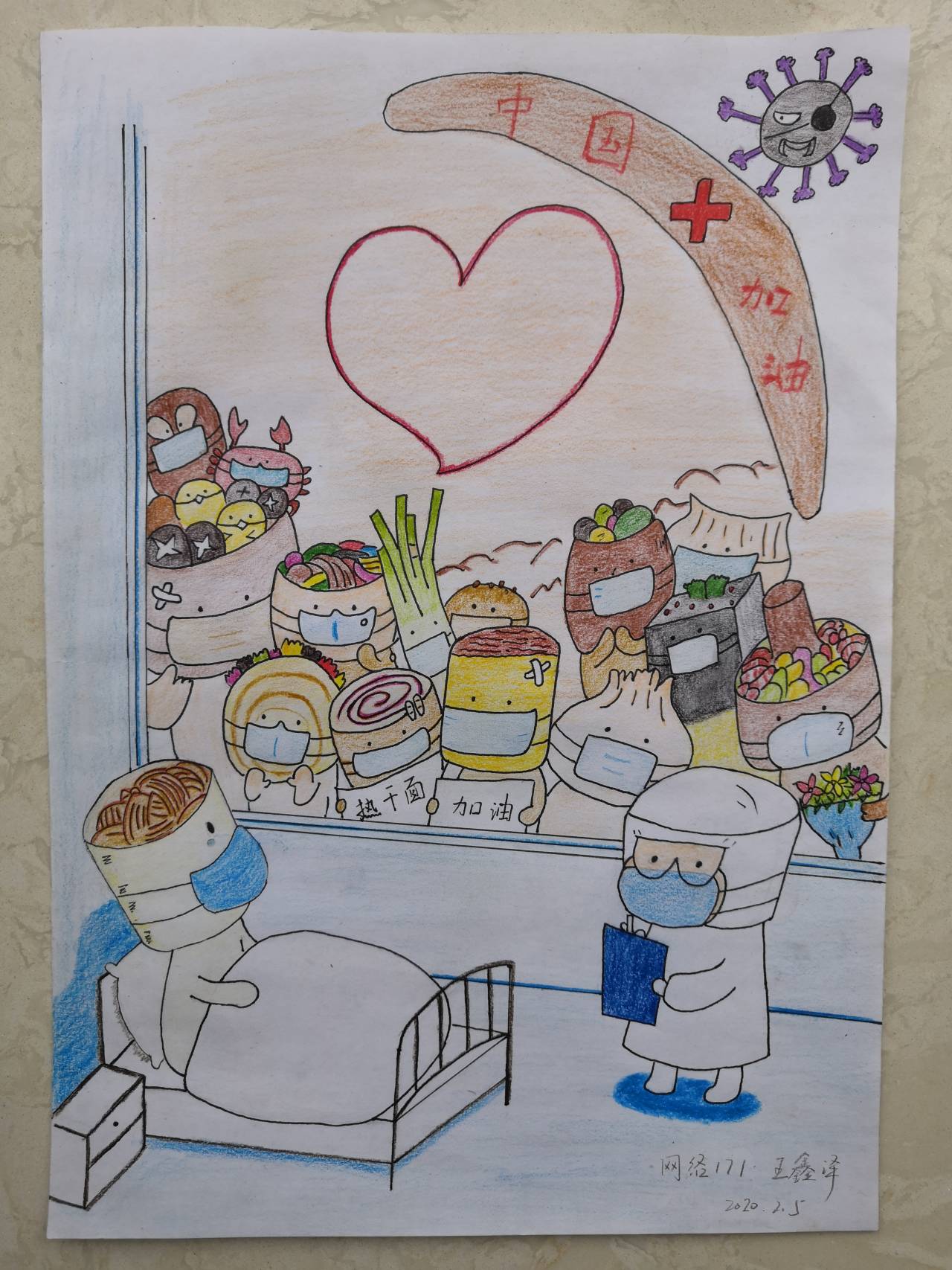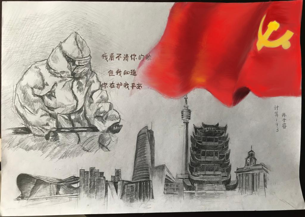 “这个冬天,虽然武汉经历了病毒的感染,但是仍旧感受到了周围身边人的温暖,我们隔离的是病毒,不是爱与温暖。风雨同舟,携手同济,坚定信心,科学防护,我们就一定可以打赢这场没有硝烟的斗争。最后,向每一个医护工作者致敬,你们是最美的逆行者,希望你们都能够平平安安。”——通信174王锡亮