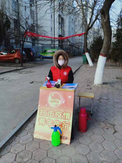 材料164班范欣然,山东省德州市临邑县人。1月30日,在看到招募志愿者的信息后,立刻主动报名,成为了疫情防控志愿者组织的一员。她的工作是在临邑县广场小区出入口对小区出入车辆及人员进行排查登记和体温测量工作,在县团委工作人员带领下为广场小区进行喷洒消毒。她说:“作为一名大学生,要努力为我们的社会和国家做点事情。生活是美好温柔的,你发出一点点光,给人一点温暖,给也想要发光的人鼓励和共鸣,给在发光的人认同与支撑,这真的就很棒很厉害。”