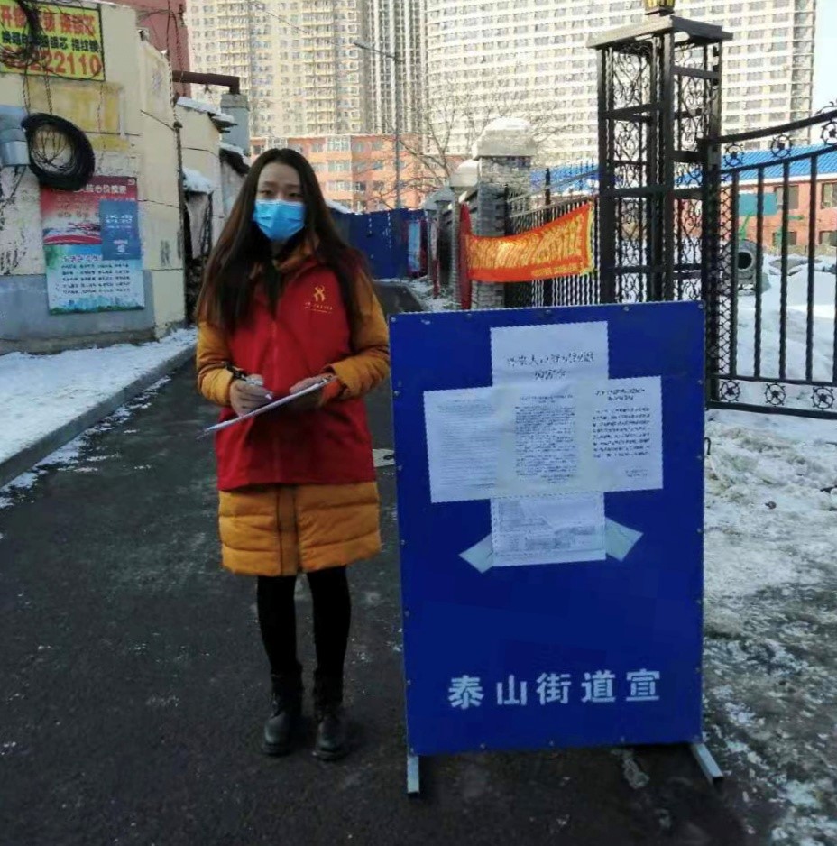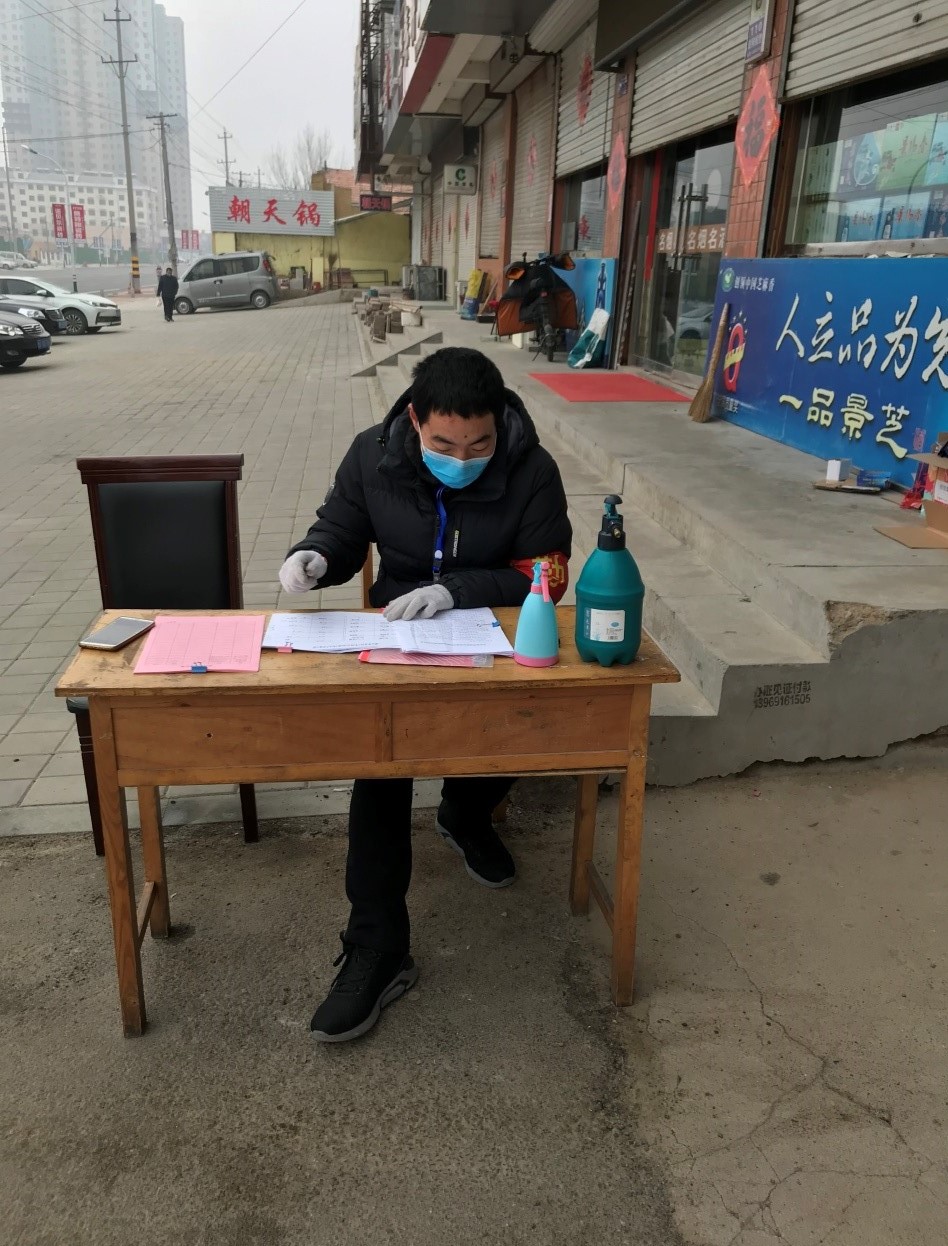 党旗所指就是团旗所向。在社区防疫抗疫第一线志愿服务的不仅仅有一位位党员,还有着许多普通同学的身影。1月27日,电商171班学生王一帆看到吉林省共青团发布的志愿者招募信息后,决定以实际行动守卫家乡。她每天要奔波两处地方,先在高速路口为司机测温,然后再参加吉林市丰满区泰山街道办事处组织的社区消杀与小区居民登记工作。吉林省冬天温度往往在零下二十度左右,可王一帆从未有一天迟到、早退,再冷的天气也熄灭不了她抗击疫情“不惧”、“不退”的热情。经济181班王伟,从2月1日起就在山东省青岛市胶州市胶西镇孙家屯村做志愿者,主要负责排查湖北返乡人员和发放宣传材料,她说:“工作虽忙虽累,但心中充满了为国家防疫抗疫工作做贡献的骄傲感与自豪感。” 国商191班班长杜良宇,2月11日一大早便来到了德州市宁津县宁城街道朝阳社区,他对社区负责人说:“你好,我是青岛理工大学的一名大学生,我要报名加入社区志愿者队伍,为防控疫情出一份力”。从这一日起,杜良宇便身着红色的志愿服值守朝阳社区学府雅苑,为进出小区的居民登记、测量体温,成为朝阳社区战“疫”一线的一抹“温暖红”。经贸171班温馨、营销182班王鑫、会计181班常小珂、经济181班荆冰洁、经济192班郑田田、国商191班吕韶杰……一位位商院学子纷纷行动起来,不惧严寒、不畏疫情,投身社区防疫抗疫第一线,展现出了理工学子的责任担当,写下了抗击疫情的青春诗行。(撰稿:薛诚;审核:董兰国)