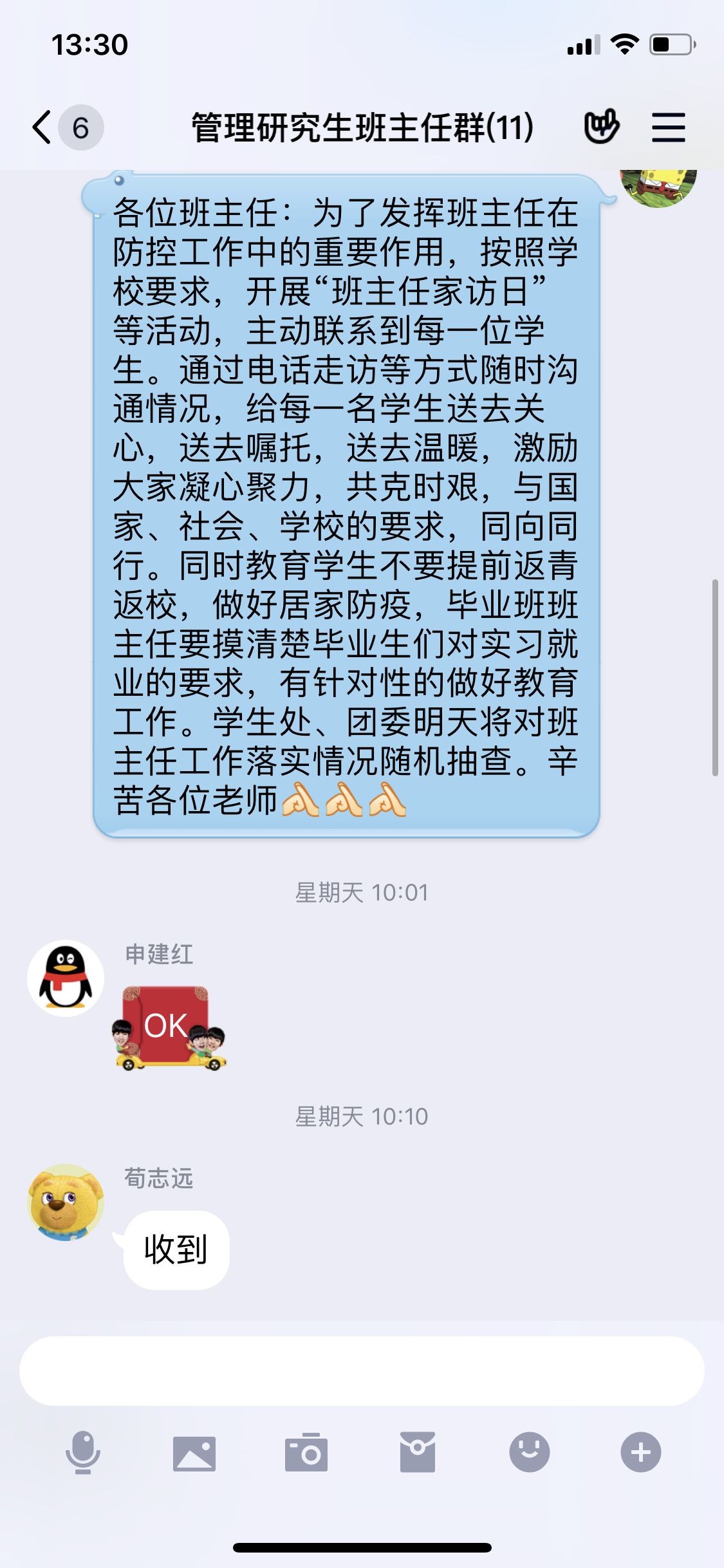自防控疫情这场没有硝烟的战争吹响号角以来,管理工程学院严密部署、积极推进,扎实做好学生防控工作,守好学生工作防线。学院在巩固本科生教育成效的基础上,对研究生管理也毫不松懈,从组织领导、拓展载体、压实责任等方面多处发力,全面及时掌握研究生动态。