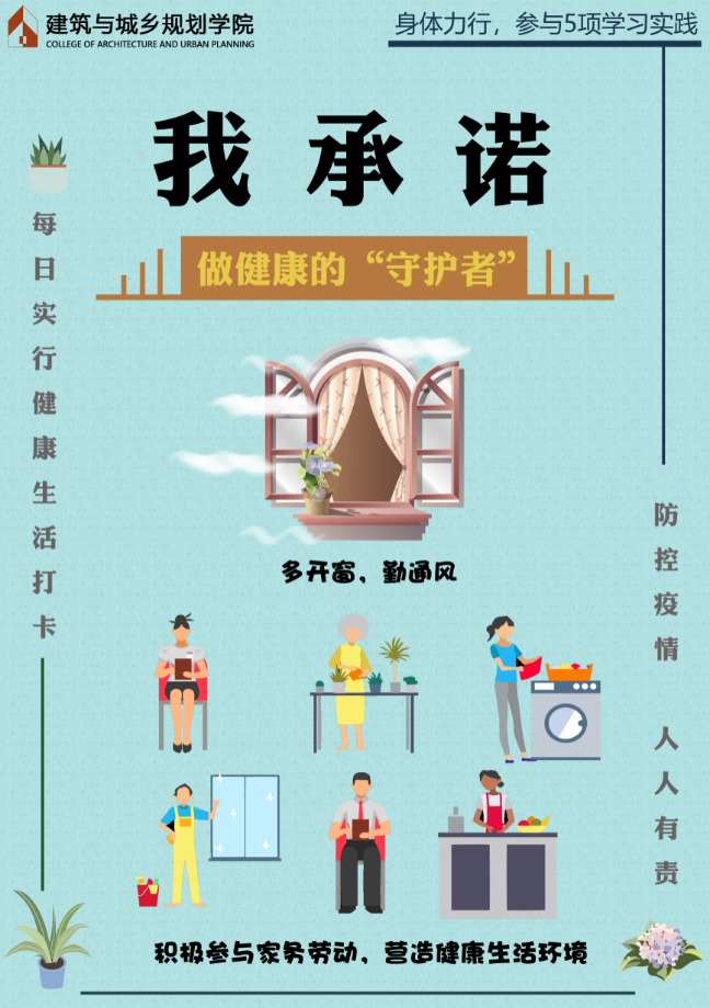 一幅幅充满创意的海报设计展现了疫情面前建筑与城乡规划学院同学们积极向上的精神风貌,提升了同学们的动手设计能力和专业知识技能,提高了同学们对疫情的防范意识,呼吁大家为夺取抗击新型冠状病毒感染肺炎疫情斗争的胜利贡献自身青春力量。(撰稿:董昕、王鹏飞;审核:高江)