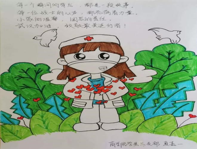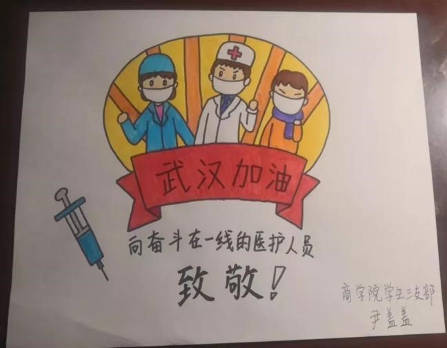 第三,同协作,攻困难。商学院学生三支部党员共同录制了《致每一位抗疫逆行者》朗诵,致敬齐心协力共抗疫情的“逆行者”和爱心人士,让爱心在声音中汇聚;配合录制了《我的一天——让假期不虚度》MV,用视频展现居家抗疫、以“静”致“敬”、假期充电等场景;拿起自己的纸笔,真诚地写下对武汉的祝福、对中国的加油,生动地绘画出医务工作者舍小家、顾大家坚守抗疫一线的感人画面;向每位同学发出倡议,严格遵守教育部“五个一律”和学校学院关于疫情防控要求,守护理工大安全校园。
