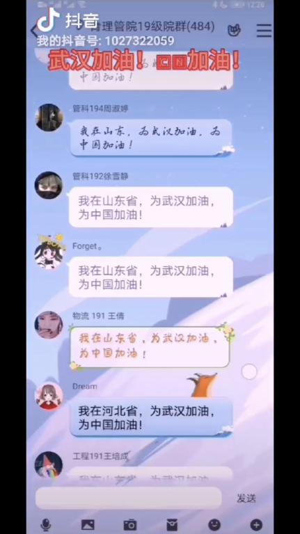 学生在抖音上为武汉加油视频截图