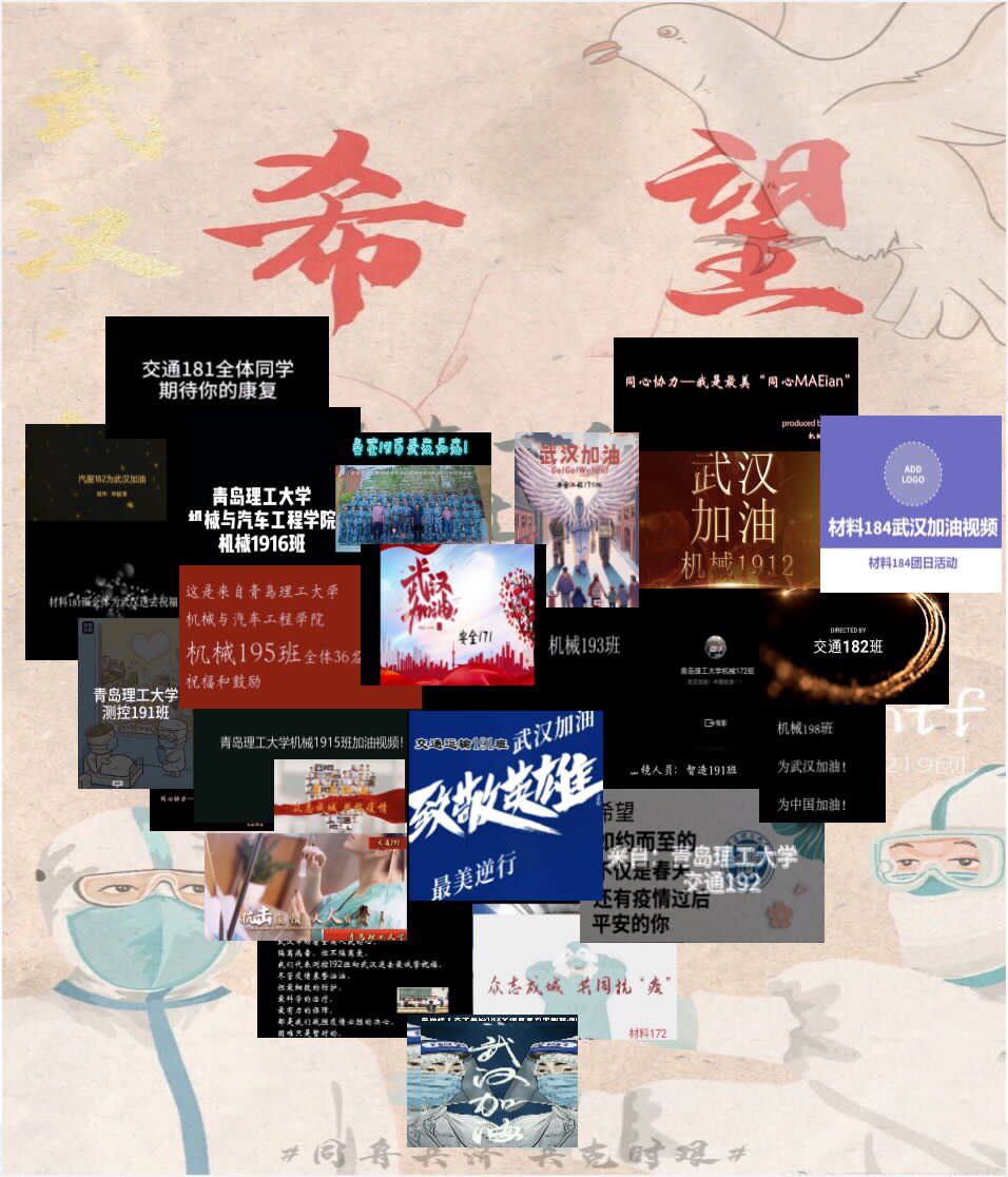 当前新型冠状病毒感染的肺炎疫情牵动着每个人的心,“虽不能至,心向往之”。为引导广大青年学生稳定情绪、坚定信心、共战疫情,近日,机械与汽车工程学院分团委举办了“我是最美X—MAEian”系列主题团日活动之“我是最美同心MAEian”活动,广大学子积极参与、踊跃发声,用拍摄视频的方式向奋斗在一线的工作者以及不断涌现出的平民英雄致敬,向武汉祝福,向中国祝福。