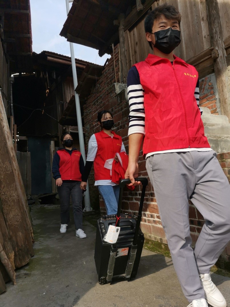 主动请战,彰显青年担当之风。当疫情来临,土木1610班胡承权同学心里虽有焦虑和忐忑,但更多的是责任和担当。他第一时间联系村党支部书记石富菖,主动提出在这次病毒防控中为乡亲做点事情,得到村两委的认同后,他与村里其他12名青年组建“疫情防控志愿宣传小组” 第一时间参加到新冠病毒防控战 “疫”中。组建队伍、分组、寻找设备、确定工作职责、制定方案……开始忙碌,为家乡防疫工作精心筹划、贡献力量。