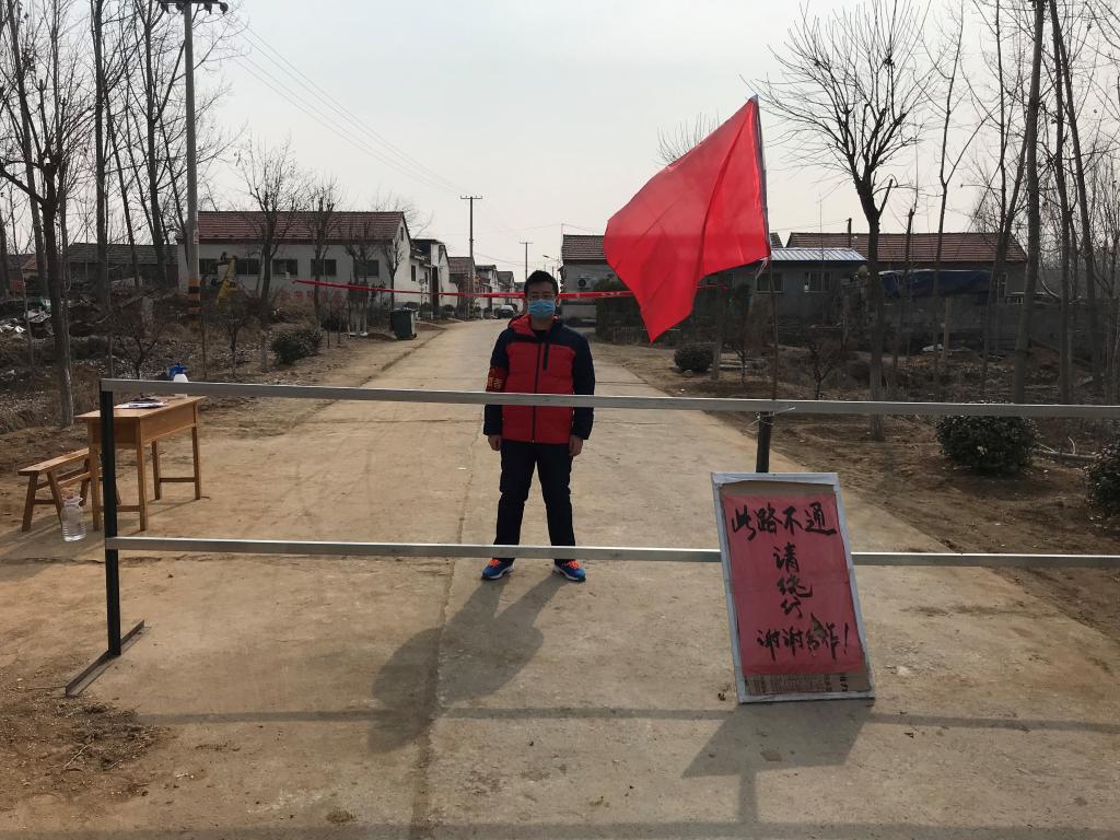 机械162班的朱甲程面对新冠肺炎病毒袭,毫不犹豫的响应村里的号召成为了一名志愿者,在村里的街道路口设卡排查,对外来车辆和人员进行劝返,对本村的来往车辆进行登记,同时对周边经过的村民进行防控知识宣传。