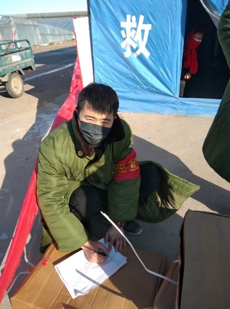 家住登封市市区的曹泽鹏,是学院学生二支部的学生党员,面对严峻的疫情防控形势,积极以实际行动来响应党中央发出的打赢疫情防控阻击战的战斗号召,做一名抗“疫”战斗员。他主动向登封市市团委疫情防控小组请缨,要求加入到疫情防控的队伍中去,当一名志愿者,到防控疫情第一线践行共产党员初心和使命,体现责任和担当。