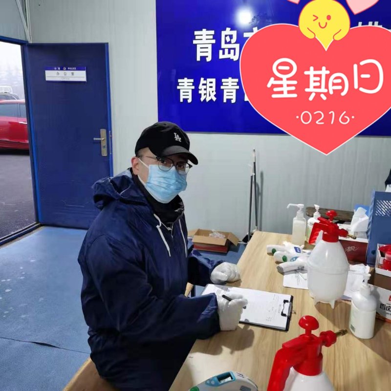 作为2019年青岛市“青选计划”的第一批人员之一,谭天被分配到了青岛市崂山区管理局工作。此次疫情期间他被抽调到防疫突击队,初十开始每天在高速路口执勤。高速口执勤的工作职责是协助引导车辆,提前告知车辆做好检查准备工作,负责登记车辆及人员信息,检测体温等。谭天先后在凌晨3:00-6:00和清晨6:00-9:00的班次执勤,一个是夜间最冷最困的时段,一个是每天通勤的高峰时段,工作时,鼻腔呼出的水汽一会儿就湿透了口罩;因长时间握紧体温枪和签字笔,一次性防护手套紧紧贴合在满是汗珠的手背上;白雾刚刚贴上护目镜,在冷风下又迅速消散,周而复始。纵使工作量大,工作环境条件差,作为共产党员的他始终坚守在岗位上,站好每一班岗,仔细地引导检查每一辆车,出色地肩负起了自己的任务。