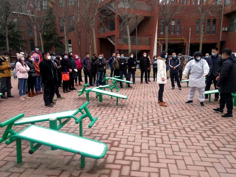 在室外培训现场,徐汉猛主任对穿脱防护设备的流程和注意事项进行了详细讲解,并邀请培训人员进行现场演示;在消杀培训环节,徐主任一行讲解了84消毒不同浓度的具体配制方法和消毒注意事项,回答了培训人员提出的后厨消毒、餐具消毒、隔离室消毒等问题。通过培训,不仅使参加培训人员掌握了消毒和配制方法,学会了自我防护,消除了消杀工作疑虑,而且为我校开学防控消杀做好了准备。