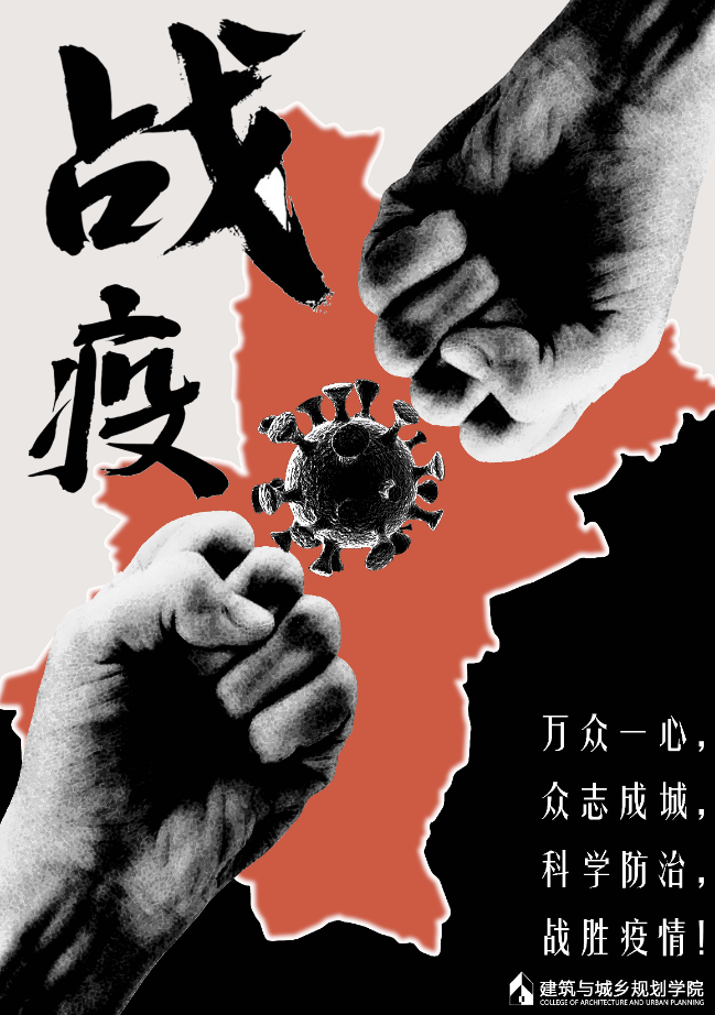 众多作品中,建研191班李鲁黔同学通过强有劲的拳头表达战胜疫情的决心,宣示只要我们万众一心,众志成城,科学防止,定能战胜疫情!建研181班田诺同学别出心裁地采用了手绘形式,终南山团队坚定的神态令人鼓舞,飘扬的国旗振奋人心。建研182班刘阳同学以中国地图为背景,暗喻受创的湖北省正在全国支援下一点点被治愈,并发出“对口支援,共克时艰,中国,一点也不能少”的心声。也有不少同学表达了对白衣战士的敬佩,对拒绝野味的决意,表达了隔离病毒、不隔离爱的心态。