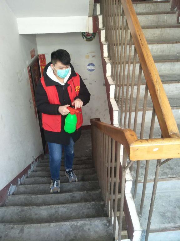 土木1713班李金炜同学,家住在济南市机车新村新区,这里曾经是铁路大厂工人宿舍改建,住户大多为铁路工厂车间的退休老人,疫情期间安全知识宣传和志愿者帮助就显得尤为重要。“这是需要我们新时代青年担当起责任的时候,少年强则国强,让不平静的冬季温暖起来。”李金炜守卡点,宣传政策、排查情况、消毒杀菌、测量体温参与社区公共区域的病毒消杀、楼道宣传,在家乡社区的抗疫工作中贡献了自己的青春力量。