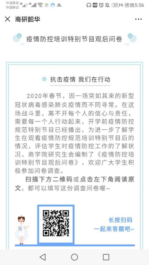 为进一步做好疫情防控工作,确保每位研究生能够掌握防疫知识。商学院面向全体研究生开展“同心战役——共上一堂防疫课”活动。